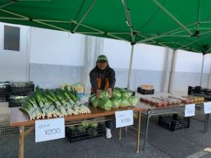 キャベツ、白菜、大根、かぼちゃ、にんじん、ブロッコリー、里芋、玉葱、白ネギ、レタス、トマト、いちご、干椎茸などの冬野菜、こだわりの特別栽培米などが会場に並びました。