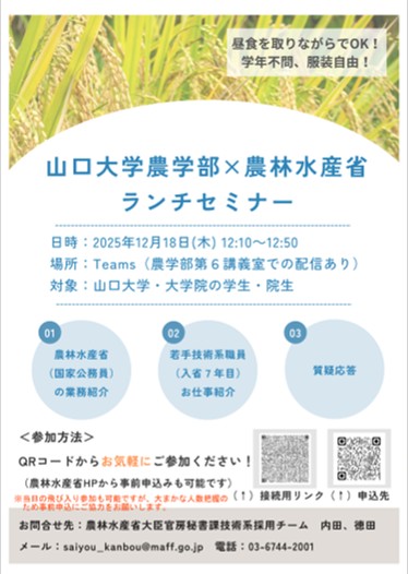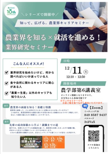 ・あぐりナビによる就職ランチセミナー開催(12/11)