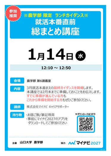 ・リクナビによる2年生向けランチセミナー開催(1/9)