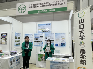 11月26~28日に東京ビッグサイトで開催されたアグリビジネス創出フェアで、次世代農業CPOTプログラムで取り組んでいる研究課題等を紹介しました。ブースのアレンジはすべて学生にお任せです。