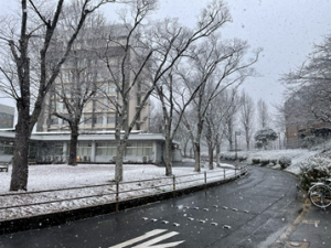 下の写真は、キャンパスの様子です。積もるほどではありませんが、