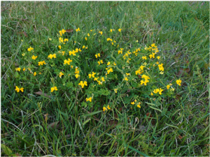 畦には、いろいろな草花が咲いています。写真はミヤコグサ