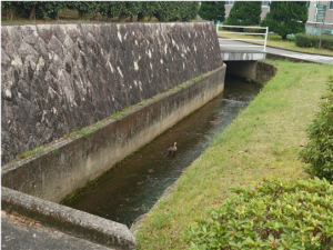 図書館の前の用水路にカモがいました(4月14日)。
