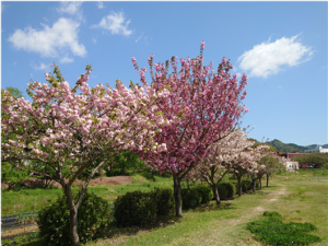 4月上旬:希望の丘(今年度より「希望の丘」という名称になりました)から桜並木を望む