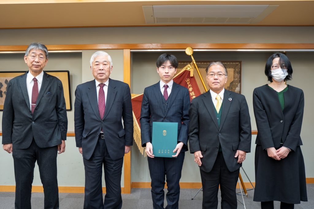 Summa賞は、学部長及び鳳陽会が公認会計士論文試験の合格者および税理士試験4科目以上合格者に対し表彰するもので、今年度は、4年生の芳原 隆晟さんが税理士試験4科目合格に到達し、表彰されました。税理士試験は、全5科目の合格が必要な非常に難易度の高い国家資格であり、在学中に4科目を突破することは快挙といえます。