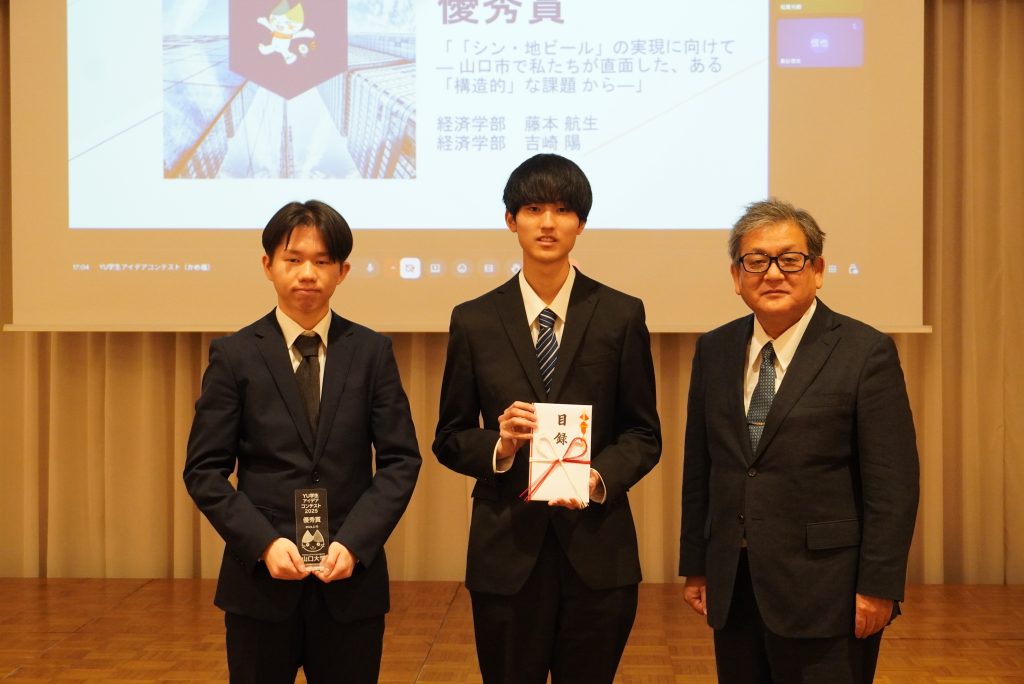 山口大学の学生を対象に、アイデアを持つ学生が自らの考えを発表する機会・挑戦の場として毎年開催しているYU学生アイデアコンテストにおいて、2月10日に最終審査会が開催され、経済学部3年生の3名が以下のテーマでそれぞれ「優秀賞」を受賞しました。