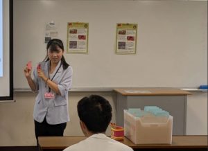 模擬授業では、台湾のおみくじを題材に台湾の文化について理解を深めました。実際に使われている器具を用いながら、おみくじの流れを体験できる工夫もなされていました。「海外で教える」ことをめざす同世代の実習生から模擬授業を通して台湾文化を学べる機会になりました。