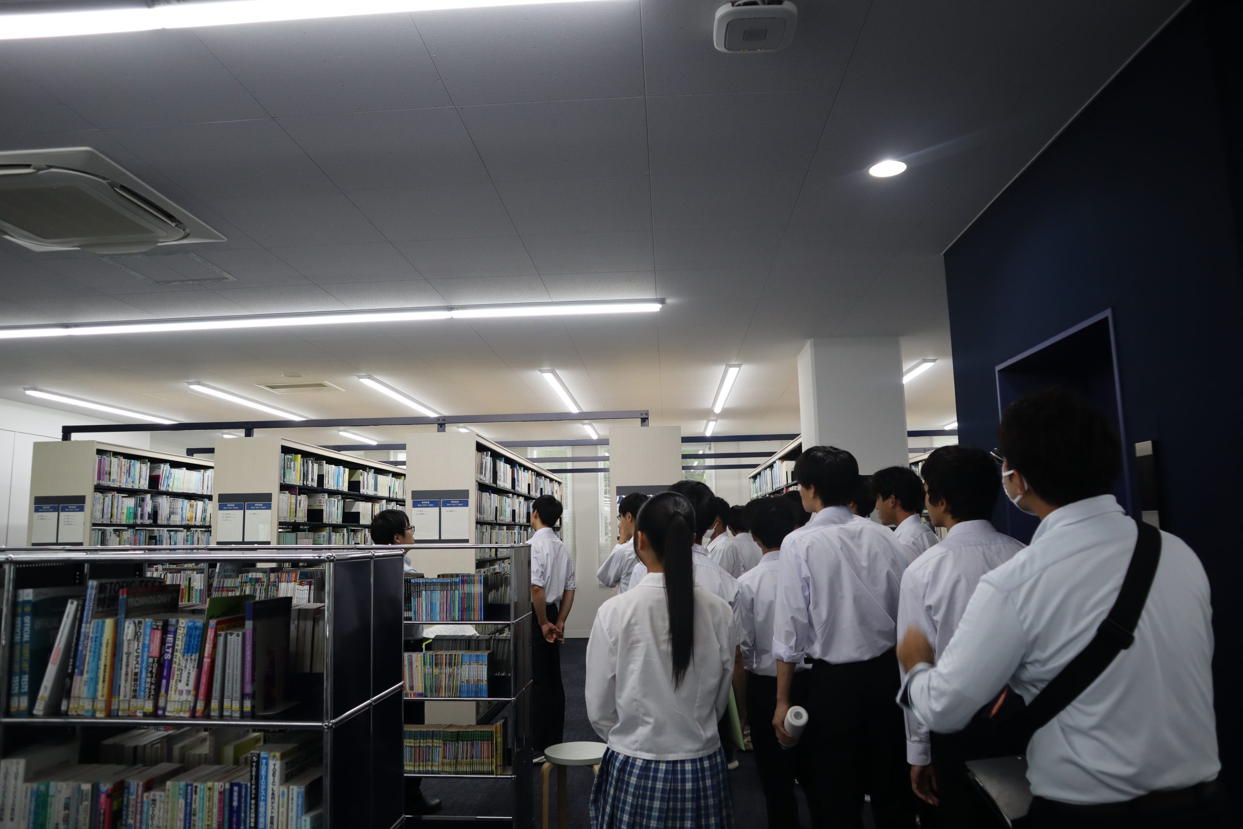 図書館スタッフによる図書館見学の様子