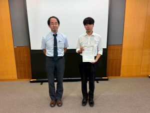 2025年9月4日に海峡メッセ下関にて開催された「第37回中国四国伝熱セミナー・下関」にて、機械工学科4年の伊藤大貴さん(機械エネルギー制御工学研究室)が、優秀発表賞を受賞しました。