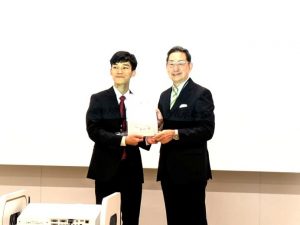 Iliyaさん「この度はこのような賞をいただき、大変光栄に存じます。研究テーマを引き継いでから学会で発表できる段階まで丁寧にサポートしてくださった三上先生、坂野先生、そして協力してくださった研究室の皆様に心より感謝申し上げます。この賞をモチベーションとして今後も球状の低融点系固体燃料の燃焼特性を調査し、燃焼モデル構築に貢献していきたいと思います。」