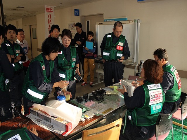 山口県で大規模地震が発生した想定のもと、中国地区5県の災害医療チームDMATが山口県に参集し、急性期の医療活動を効率的に行うための訓練が平成26年11月8日(土)に実施されました。