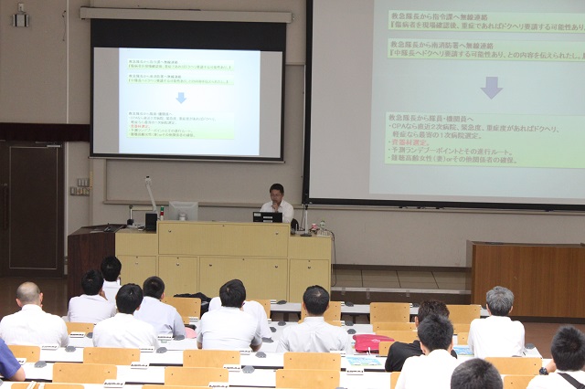 7月23日(土)、医学部第3講義室において第7回山口県ドクターヘリ事例報告会を開催し、県内各消防機関の消防職員や救急指定病院等の医師、看護師など約100人が参加しました。
