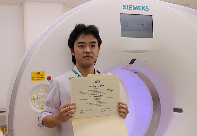 放射線部の竹上和希技師が、平成28年11月26日から12月3日にかけてアメリカのシカゴで開催された北米放射線学会(RSNA2016)のEducation posterで"Certificate of merit"を受賞いたしました。本学会は、放射線技術に関わる世界中の医師・技師・医学物理士・大学関係者等が参加する世界最大規模の学会で、今年は約4500の研究発表が採択されています。