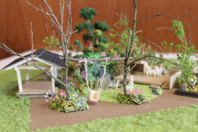 高低差を利用し身体機能を増進する築山、足裏を刺激する地面や徒歩池、香りの良い花やハーブの育成や園芸で心の健康を保つ環境、人と接し語らう3世代交流デッキなど、庭と関わる日常生活の中で身体や心の健康を維持増進し、病気の予防や退院後の機能回復・維持、そして、高齢者を中心に3世代が集い、楽しみ、元気になる庭を提案します。
