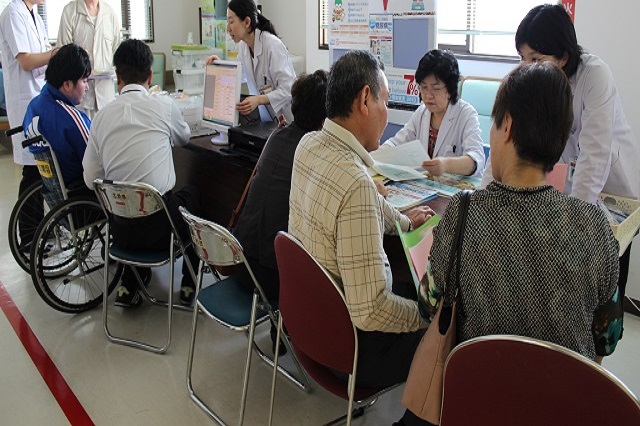 式典後、メディカルスタッフの協力のもと、患者さんや来院された方を対象に記念グッズの配付、健康チェック、医療・栄養・福祉の相談、介護用品の展示、認定看護師による血糖測定、手洗いチェック、ハンドマッサージの実践・指導が行われ、小さな看護師さんコーナーでは来院された子供さんに白衣を着てもらいました。多くの患者さんや来院された方が参加され、盛況のうちに終了しました。