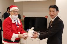 贈呈式の後、サンタクロースに扮した猶副会長は病室を回り、入院中の子どもにプレゼントを手渡していきました。プレゼントを受け取った子どもたちは笑みを浮かべ、とても喜んでいました。