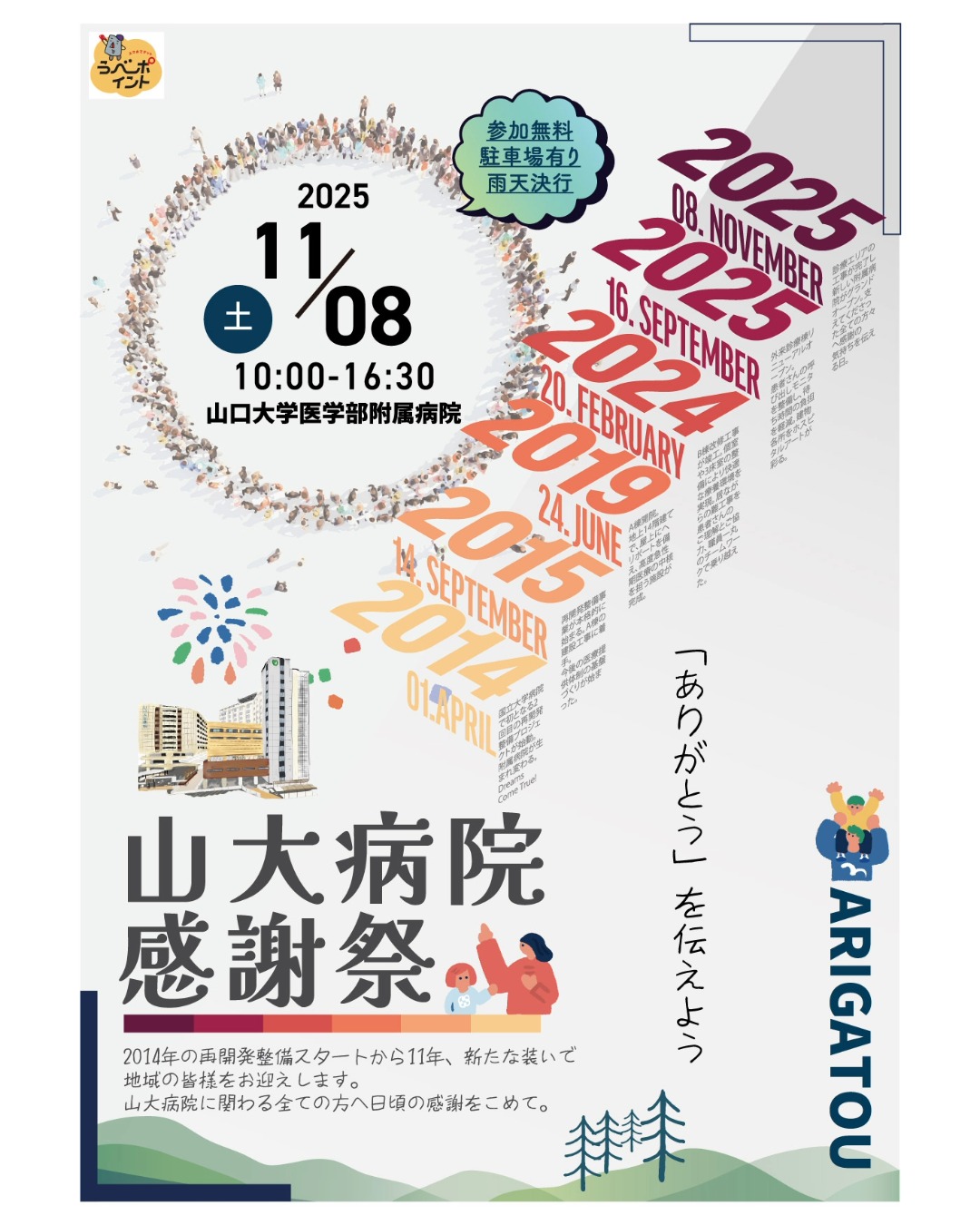 長期にわたる工事にご理解とご協力をいただいた全ての皆様に感謝の気持ちを込めて、「ありがとうを伝えよう」をテーマに感謝祭を開催します。