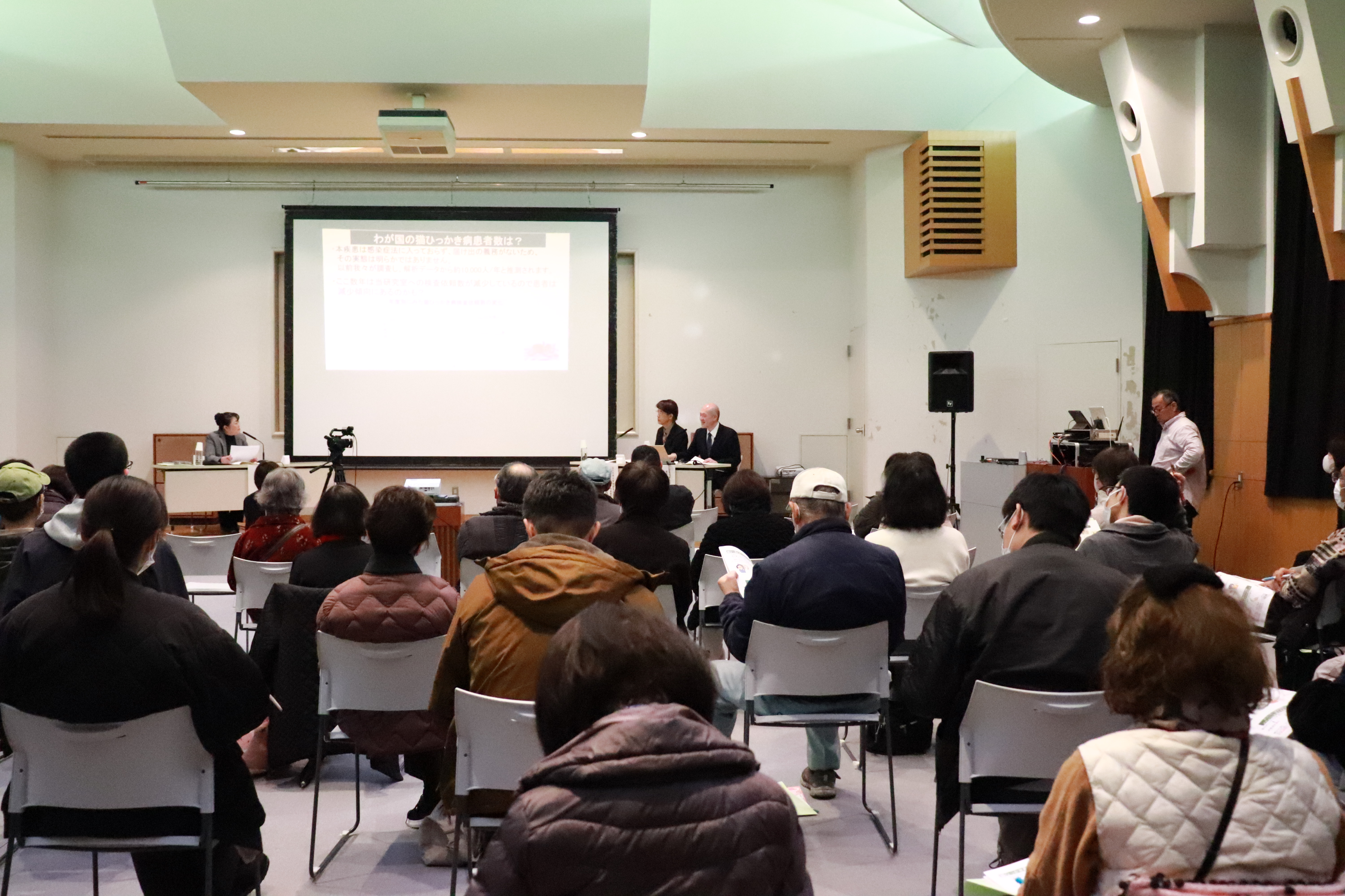 講師は山口大学大学院医学系研究科保健学専攻の常岡英弘特命教授と、大津山賢一郎講師の2名で、当日は老若男女を問わず約90名の方が参加されました。