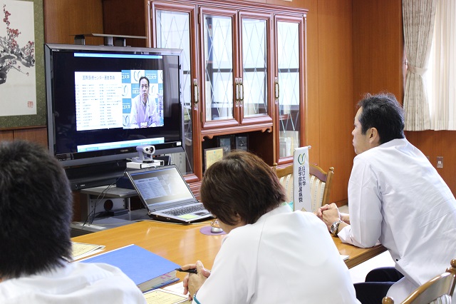 9月30日(水)、札幌市において国立大学病院長会議で「行動計画2015」の国際化ミッションとして「第3回国際遠隔医療教育ネットワークに関する担当医師及び技術担当者全国合同会議」が行われ、本院の医療人育成センター 上田克彦コメディカル育成支援部門長(診療放射線技師長)が「国際化推進に関する取り組み」についてテレビ会議で発表しました。