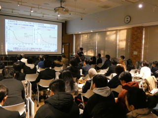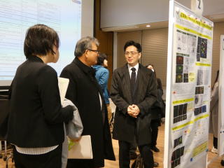 谷澤学長の開会挨拶で始まり、異分野融合研究実践型博士後期課程学生育成プロジェクト(JST-SPRING事業)の選抜学生、医学部FOCSプロジェクト採択研究者、本学の若手研究者の計16名がショートプレゼンテーションを通じて自身の研究を紹介しました。その後のフリーディスカッションでは、会場に掲示したポスターの前で参加者との活発なディスカッションが行われ、参加者間の理解を深めました。今年度からは、JST-SPRING事業の学生の研究内容に対して投票を行い、会の最後に、堤宏守