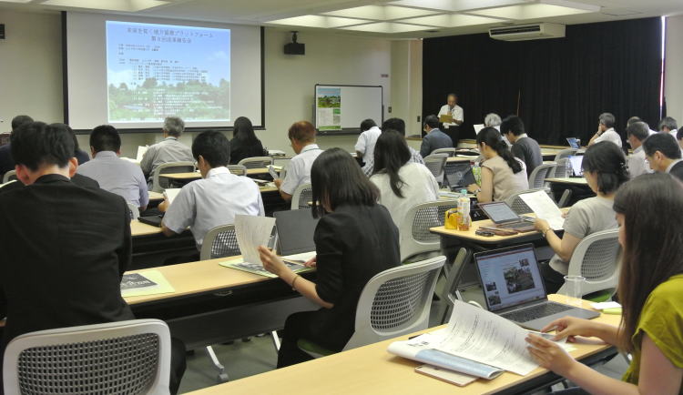 8月8日(木)吉田キャンパス 大学会館2階会議室で、「未来を拓く地方協奏プラットフォーム(HIRAKU)第9回成果報告会」を開催しました。「未来を拓く地方協奏プラットフォーム」は、広島大学を代表機関とし本学と徳島大学が共同実施機関として参画している、博士後期課程からテニュアトラック教員までの若手研究者をイノベーションを創出する人材として育成していく事業です。この成果報告会は参画する3大学持ち回りで開催されており、本学での開催は、2016年7月、2018年2月の開催に続く3回目となります。当日は、広島大学・徳島大学のコンソ事業共同実施校はもちろん、長期インターンシップ受入先等企業からの来学者も含め、博士後期課程学生・テニュアトラック教員・一般教職員など約40名が参加しました。