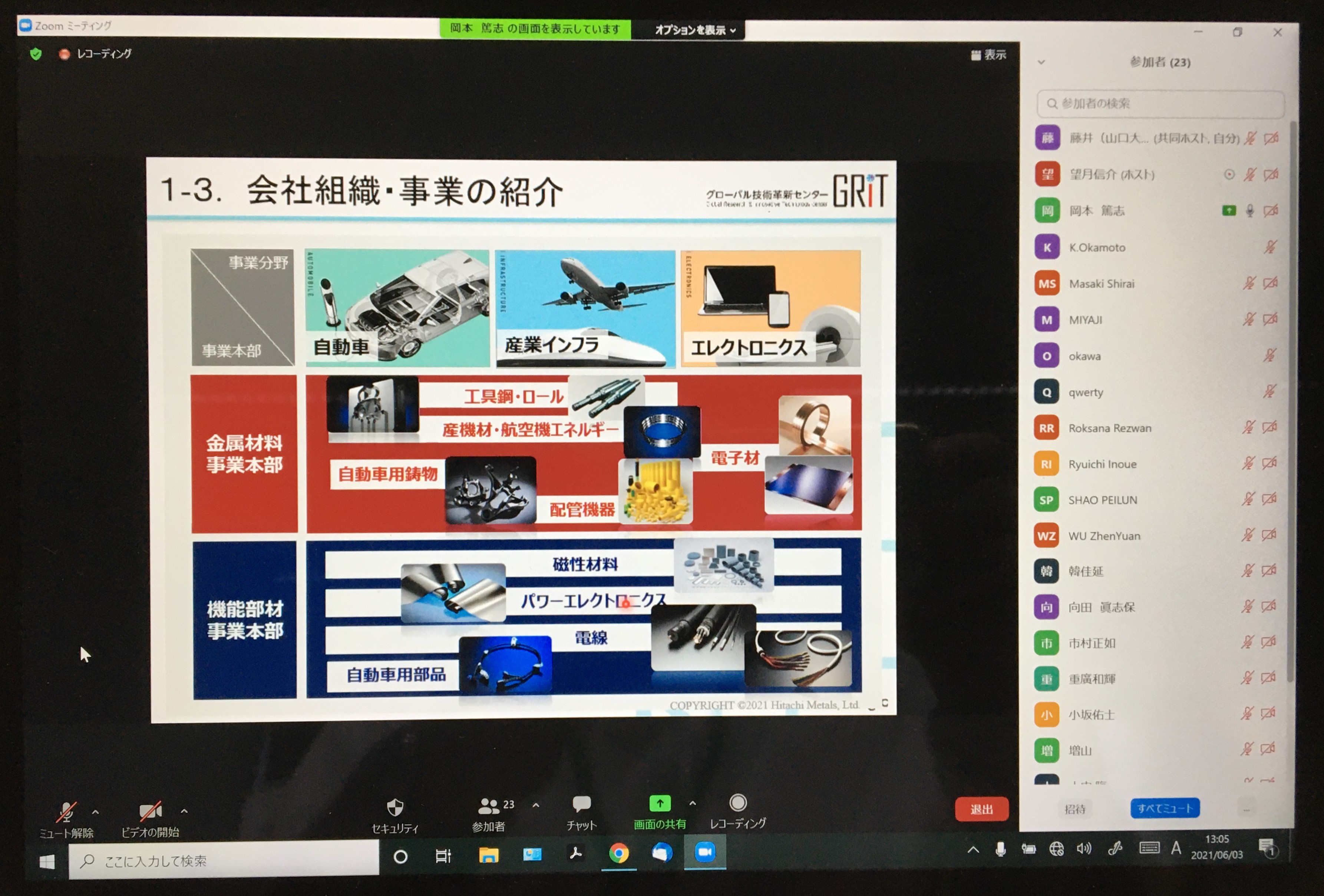 6月3日(木)オンラインにて、「第129回コンソーシアム人材セミナーin山口」 と「キャリアデザインⅡ(2021年度第8講)」の共催セミナーを開催し、他大学や山口大学OBからの聴講者も含めて、22ヶ所(講師除く接続数)からの参加がありました。