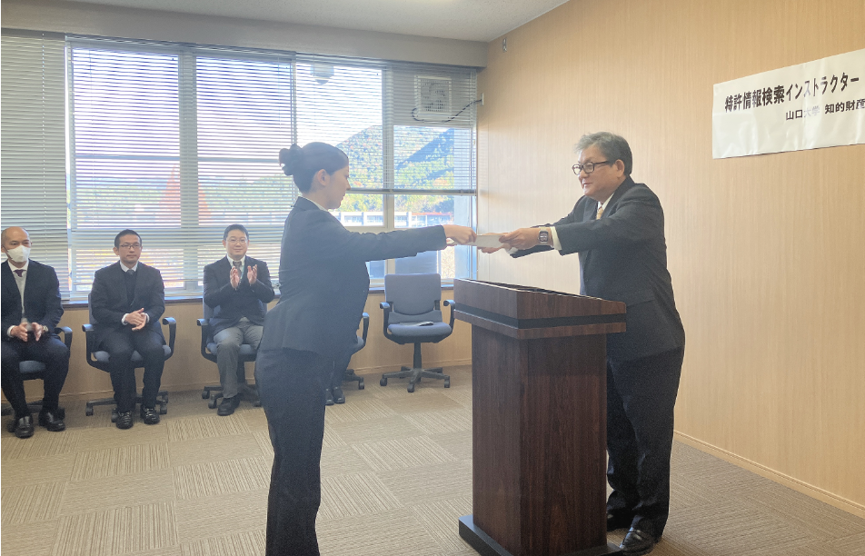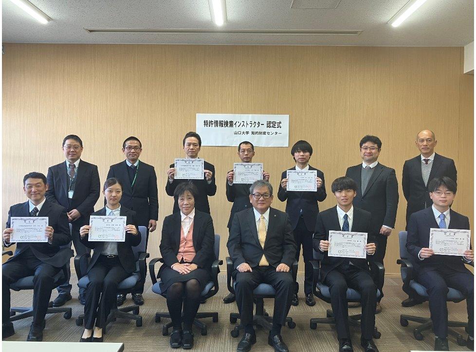12月19日(木)に山口大学特許情報検索インストラクターの認定授与式を学長室にて開催しました。