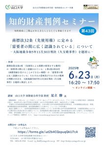| 資料等 | 20250623_第43回知的財産判例セミナーチラシ |