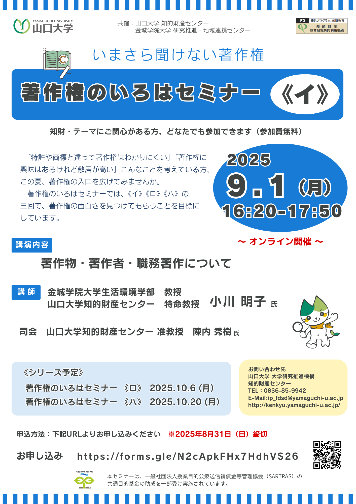 | 資料等 | 20250901_著作権のいろはセミナー《イ》チラシ |