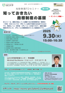 | 資料等 | 20250930_第17回知財教育FDセミナーチラシ |