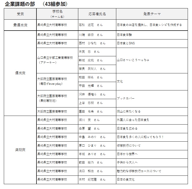 審査結果は以下の通りに決定いたしました。