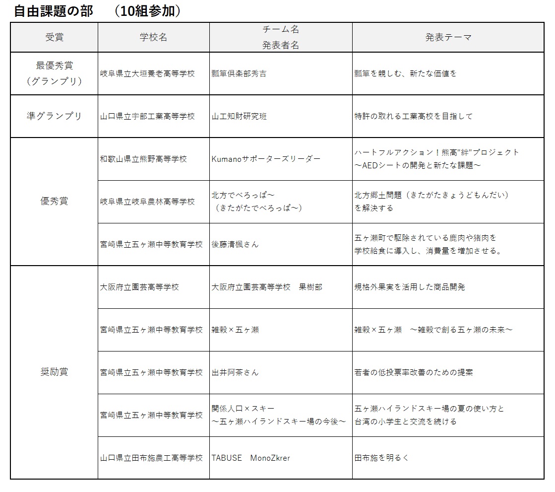 【自由課題の部】及び【企業課題の部】において ファイナリストとして全国8校 、53組にご参加いただき、