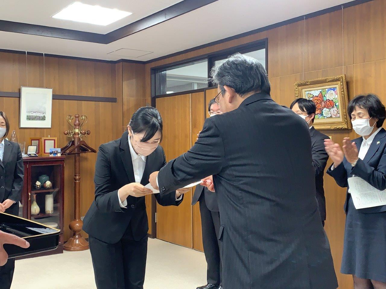認定証は一人一人に谷澤学長から直接、授与されました。