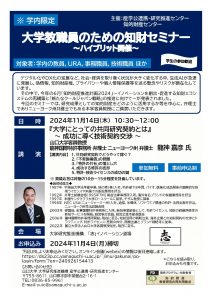 【対象者】 学内の教員,URA,事務職員,技術職員 ほか,学生の参加も歓迎!
