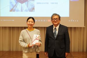 プレゼンテーション後には、実現性や提供価値、提案に至った動機等について、学外有識者を含む審査員による審査が行われました。最優秀賞には、国際総合科学部 国際総合学科 3年生 今藤 彩佳さんが提案した「エモーショナルタンク」が選ばれました。