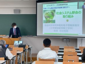 令和5年4月14日に、山口大学グリーン社会推進研究会社会システム部会の令和5年度第1回セミナーを開催して、現地13名、オンライン12名、計25名にご参加いただきました。
