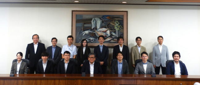 前列向かって左から、蓮池里菜助教(創成科学(工))、白石僚也准教授(創成科学(工))、MAO ZEBING講師(創成科学(工))、谷澤幸生学長、江島圭祐助教(創成科学(理))、佐藤悠助教(大学研究推進機構)、今井啓之助教(共同獣医学部)