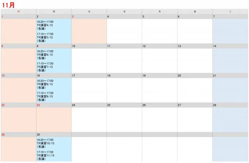 授業時間割カレンダー