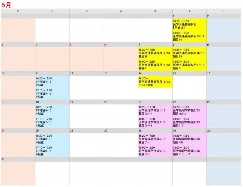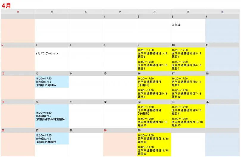 2026年度(令和8年度)医学系研究科 医学專攻 授業日程表