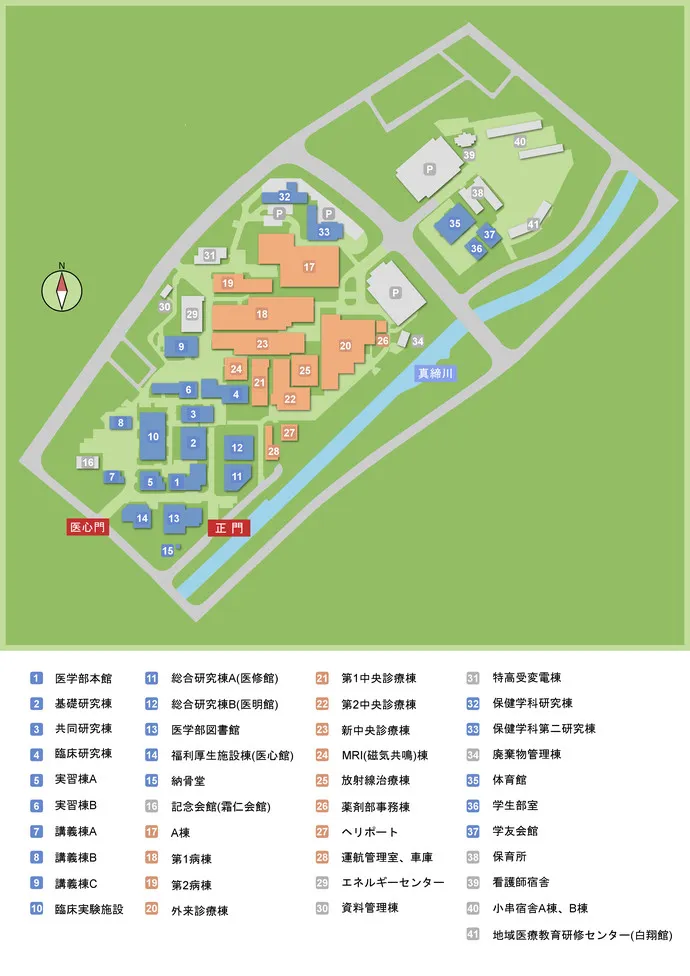 キャンパスガイド 学部案内 > キャンパスガイド 小串キャンパス 医学部の学生が集う小串キャンパスは、宇部市の中心部にありながらも近くの河畔公園から四季を感じることができます。そんな環境のもと、日々活発な研究活動が行われています。 キャンパスマップ 平成31年4月1日現在 マップのダウンロードはこちらから トップページへ戻る