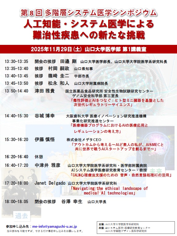 【 第8回多階層システム医学シンポジウム「人工知能・システム医学による難治性疾患への新たな挑戦」 】