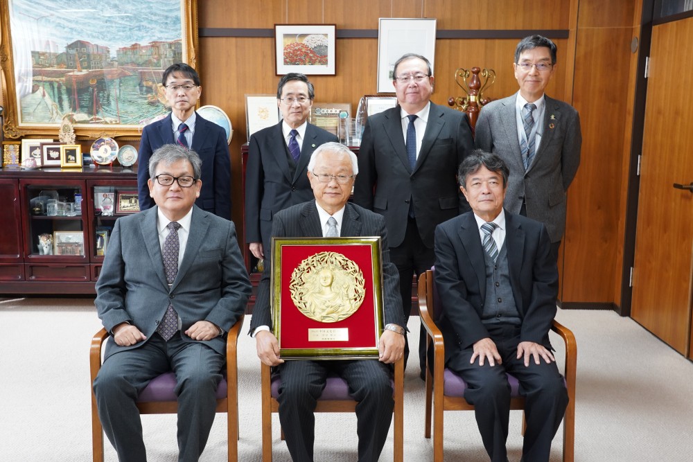 この度の受賞を受け、11月21日(金)に懇談会が開かれ、田中名誉教授からの報告とともに、谷澤幸生学長および理事よりお祝いの言葉が述べられました。
