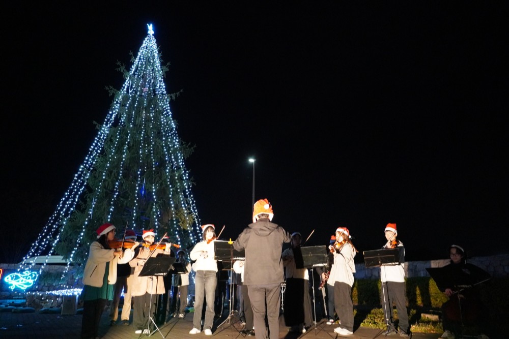 12月1日(月)、吉田キャンパス正門付近にて「冬のイルミネーションツリー2025」の点灯式を行いました。