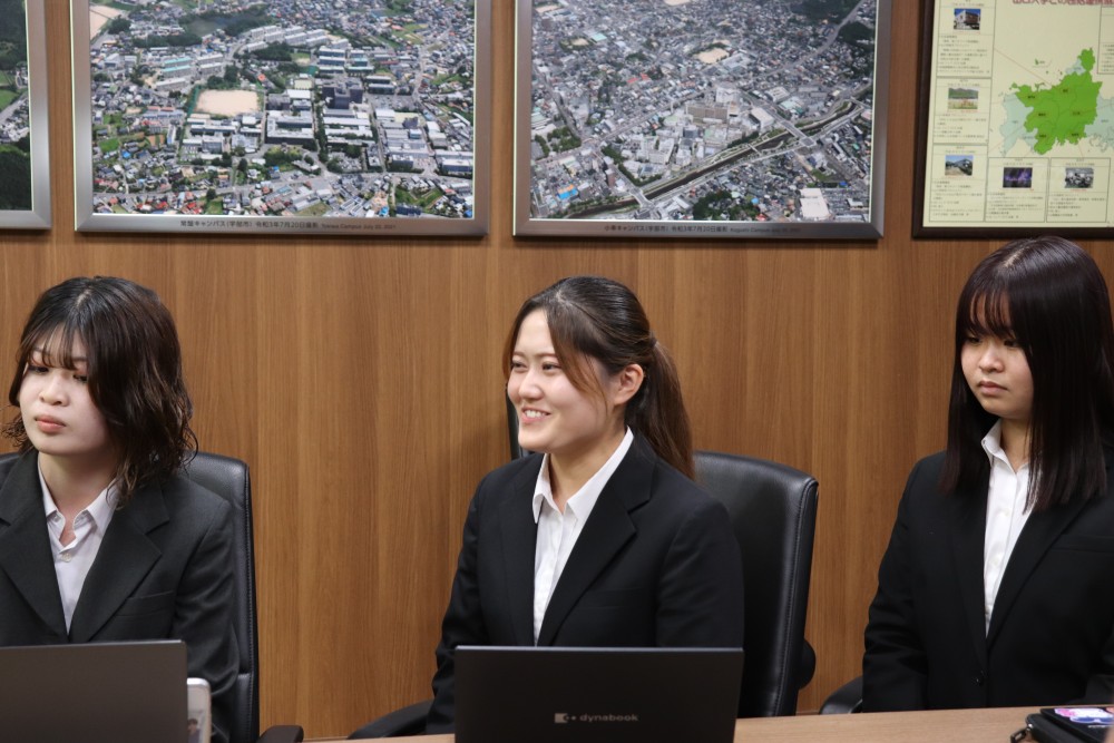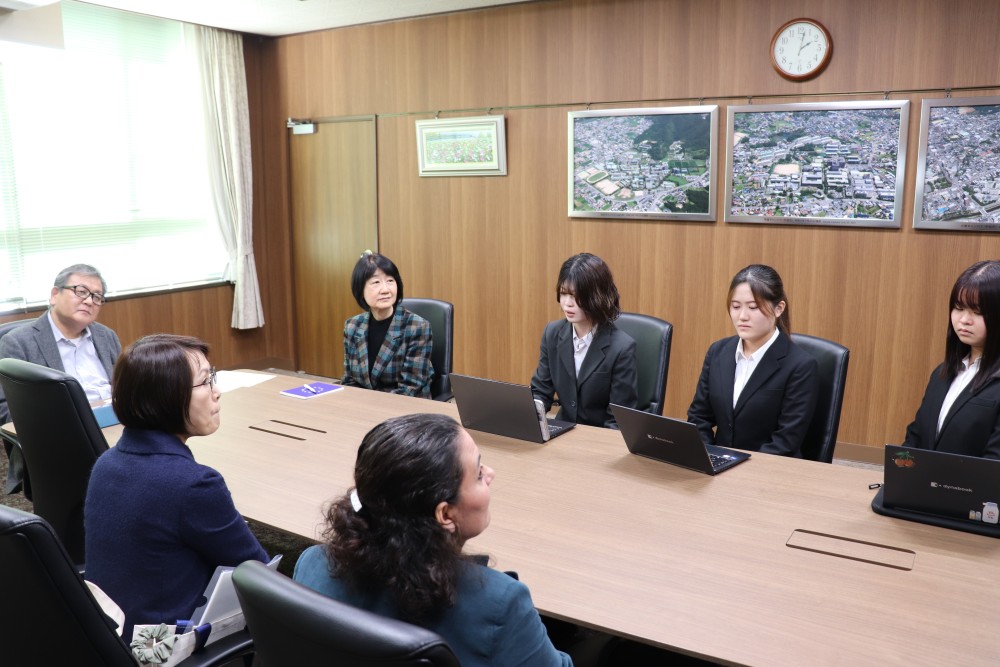 12月9日の報告会では、APAHLに参加した学生3名がスライドを用い、チェンマイ大学での活動内容やプログラムを通じて得られた学び、感想を具体的に説明しました。谷澤学長や、同席した石井由理副学長(国際連携担当)からの質問に答えるなど、引率教員を含めて終始和やかな雰囲気で歓談が行われました。最後に谷澤学長から、参加学生に対する労いの言葉と、プログラムでの経験を活かした今後の活躍への熱いエールが送られました。