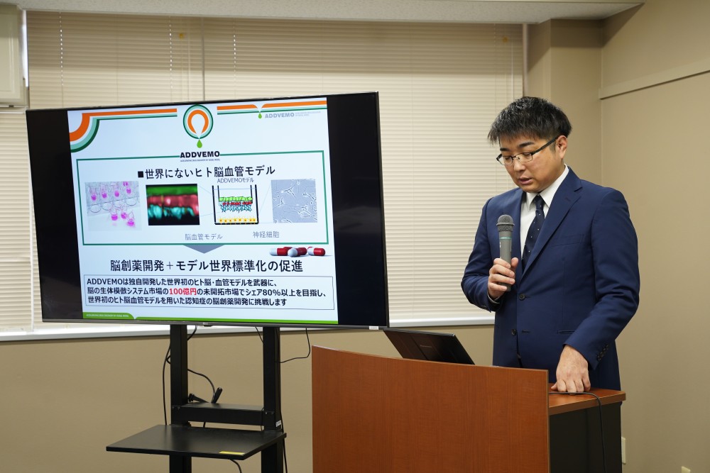 株式会社ADDVEMOは、本学医学部神経・筋難病治療学講座の竹下 幸男 教授ならびに田島 明 氏が共同代表を務め、本学医学部病態検査学講座の富永 直臣 助教がCSOを務める山口大学発スタートアップです。本学と株式会社ADDVEMOは、ヒト脳血管モデルキットの提供を通じた脳疾患の創薬基盤技術において連携し、研究開発・技術開発やその成果の活用、広報を実施します。