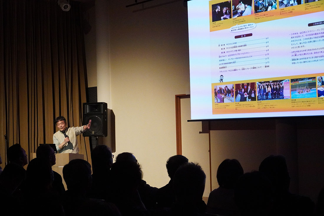 松野理事・副学長が山口とスペイン・パンプローナとの市民交流第1号とされたエピソードについて講演しました