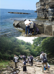 当日は中高生16名と共に、山口県を代表するジオサイトである畳ケ淵と須佐ホルンフェルスを訪れ、フィールドワークを行いました。