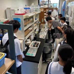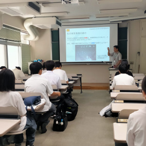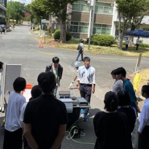 来場型の理学部オープンキャンパスは8月6日(日)の午後に開催されました。理学部の各分野(数理科学・物理学・情報科学・化学・生物学・地球科学)では、2部入替え制の企画を用意しました。高校生らは事前予約で希望する分野のミニ講義、実験あるいは研究室見学等の複数の企画を体験しました。当日、山口市は最高気温37.8℃を記録し、正面玄関前で行われた物理学分野の電波観測実験は暑さとの闘いとなりましたが、どの企画会場においても高校生が真剣な眼差しで見聞きし、山大理学部の魅力を感じていただけたと思います。来場型に参加してくださった高校生の皆さん、ありがとうございました。写真は各分野の当日の様子。