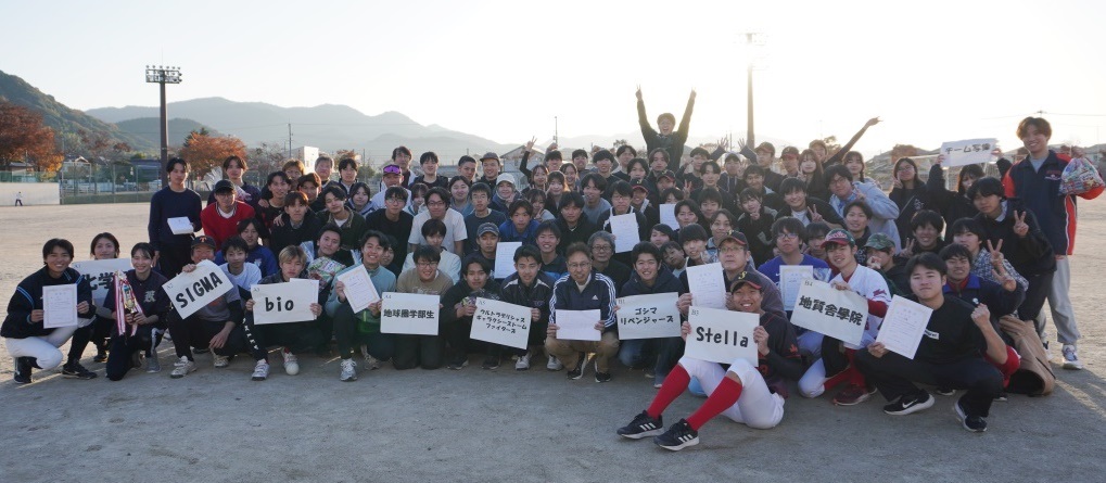 毎年恒例の理学部長杯ソフトボール大会が11月29日(土)に開催され,理学部後援会も運営に当たり必要な経費の支援をいたしました。この大会は,教職員・学生間の交流を深める目的で開催しており,今年で11回目を迎えます。今回は,昨年度優勝チームの学生の皆さんを中心に企画・運営の準備を進めてもらい,各学科・コースから 全11チーム,約140名の参加があり交流を深めました。