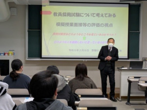 令和8年2月6日(金)に令和7年度模擬授業面接等練習会を実施しました。理学部では教員を目指す学生も多いため、例年このような練習会を実施しています。